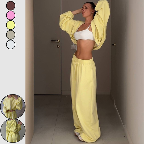 Outono Roupas Femininas 2 Pcs Conjuntos Casuais Moda Terno Esportivo Respirável Curto Hoodie Top Colheita Calças Soltas Camisola Esletic