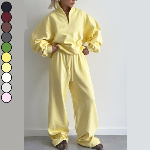 Roupas femininas Roupas de Treino Meio Zíper Moletons Longos Moletom Solto Athleisure Conjuntos de Fitness Casuais 2 Conjuntos para Mulheres